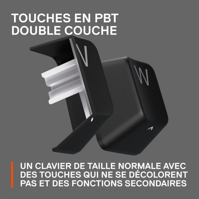 - Type de clavier : mécanique : offre une bonne réactivité. Il n'est pas nécessaire d'enfoncer la touche jusqu'au bout pour déclencher une action en jeu, ce qui rend le clavier particulièrement efficace dans vos actions
