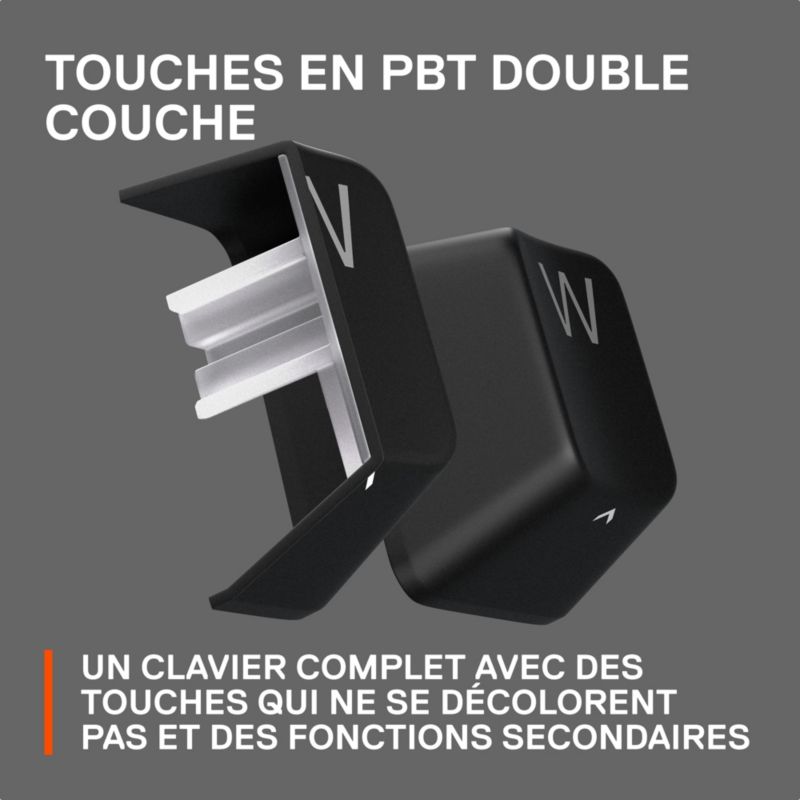 - Type de clavier : optique : offre une vitesse d'activation instantanée grâce au déclenchement des touches par une lumière et non par un contact métallique. Ces touches sont plus résistantes à l'usure, ce qui en fait un clavier plus durable dans le temps