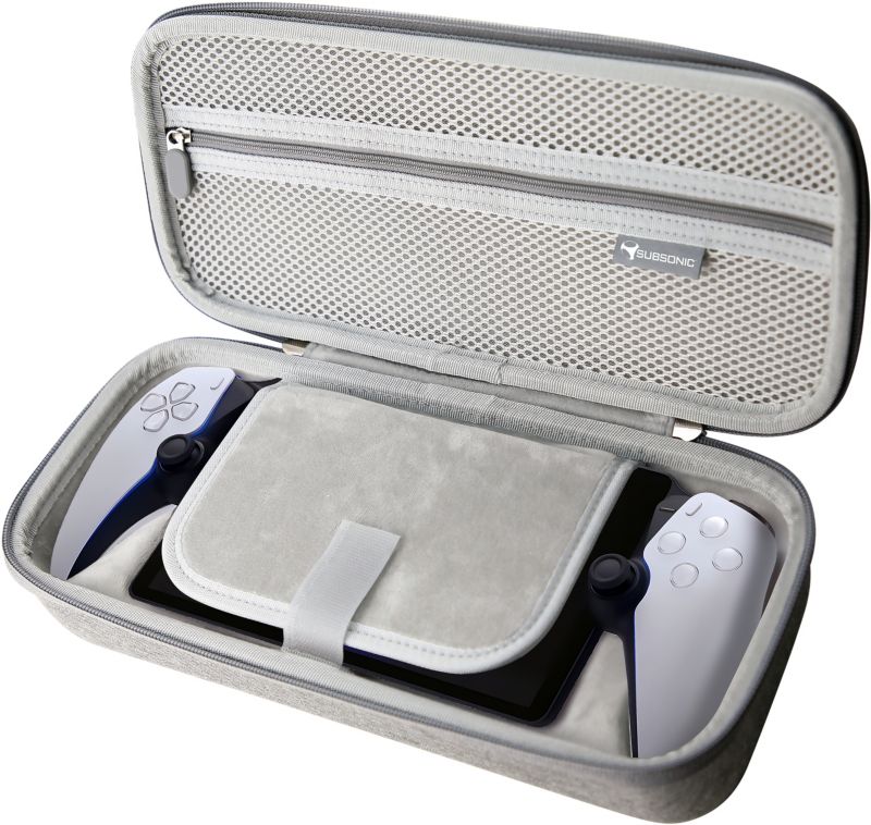 - La sacoche de transport est spécialement moulée pour accueillir la console PS Portal et éviter tout risque de mouvement de la console.