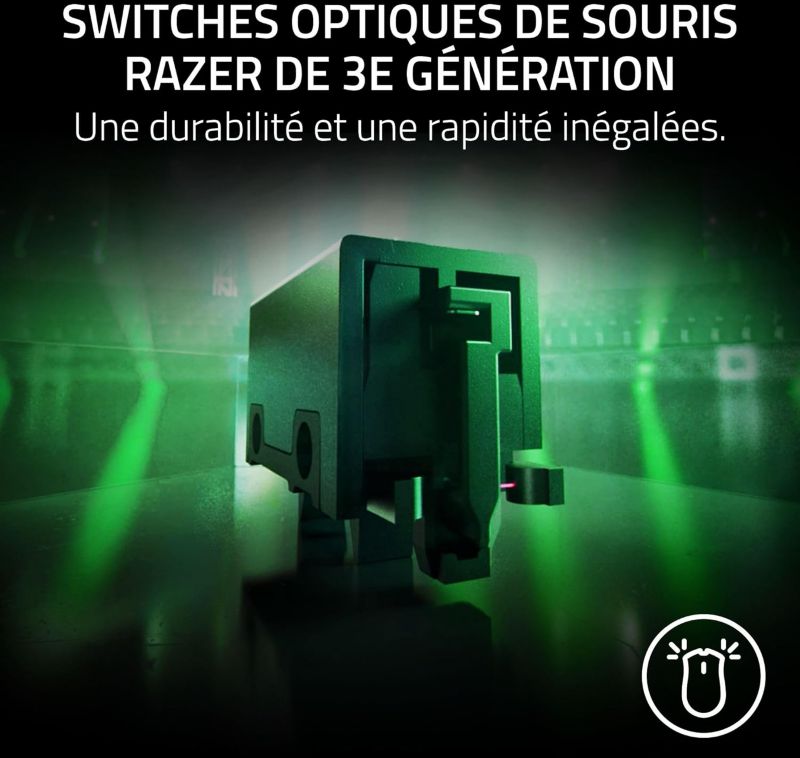 - Avantage(s) du produit : 54 g Design Ultraléger Capteur optique Razer? Focus Pro 35K de 2e Génération Technologie Razer? HyperSpeed Wireless Switch optiques de souris Razer? de 3e génération Une autonomie allant jusqu'à 95 heures Finition lisse Confort et contrôle.