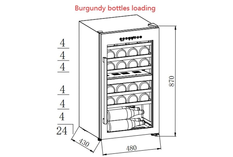 - Le saviez-vous ? : La capacité annoncée est la capacité maximale mesurée selon le standard européen EN62552. Ce standard est calculé avec des bouteilles 75cl type bordeaux tradition. La capacité annoncée correspond donc au nombre de bouteilles de bordeaux possibles avec le nombre de clayettes fournies dans la cave.