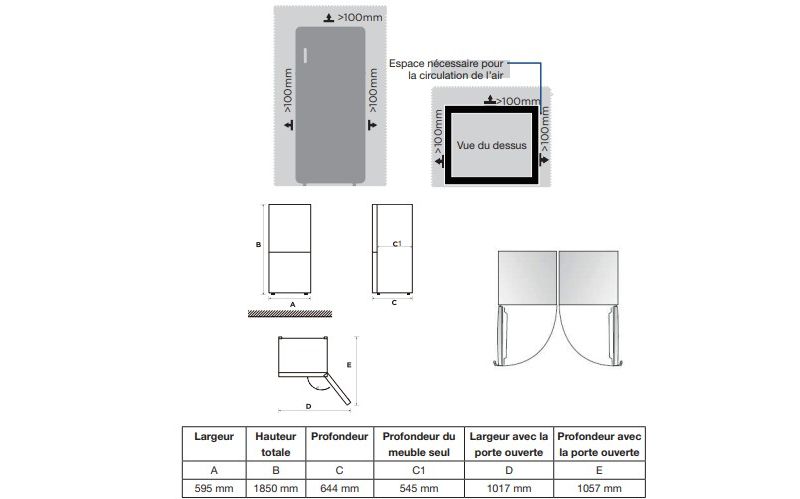 - Livré avec : bac à glaçons, kit d'inversion de porte