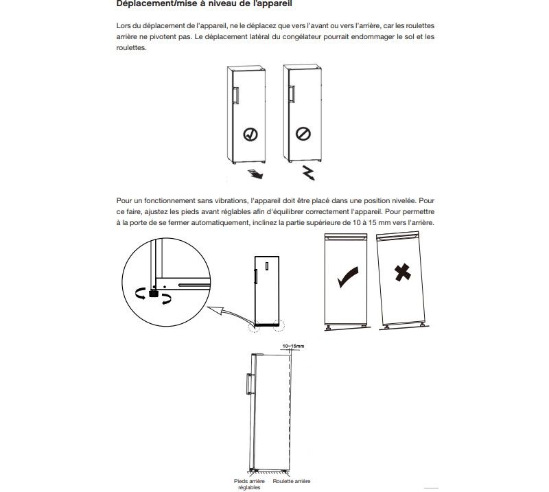 - Installation contre un mur : le congélateur nécessite d'être installé à 3 - 4 cm du mur pour accéder facilement aux tiroirs