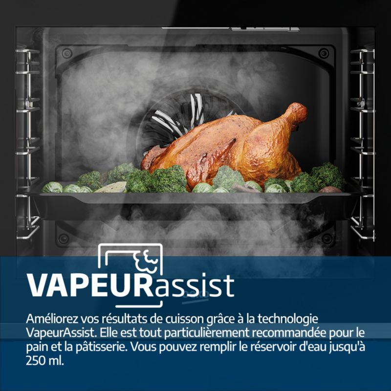 Le + : Cuisson vapeur assistée et fonction Air Fry pour une cuisine saine et croustillante.