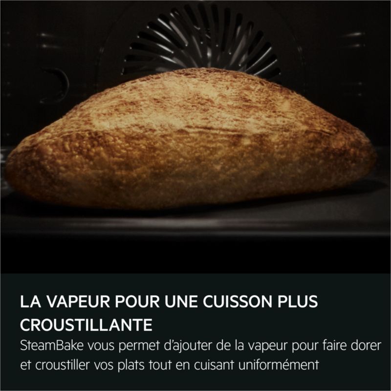 - Avantage du mode avec ajout de vapeur : La cuisson vapeur assistée permet de cuisiner à l'aide de la vapeur, afin d'obtenir des performances de cuisson améliorées. Elle est tout particulièrement recommandée pour le pain et la pâtisserie