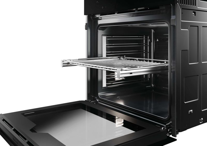 - Rails téléscopiques : ils permettent d'accéder à vos plats en les faisant coulisser en dehors de l'enceinte de cuisson en évitant les risques de basculement. Vous pourrez arroser confortablement votre rôti ou retourner facilement vos plats sans risque de brûlure.