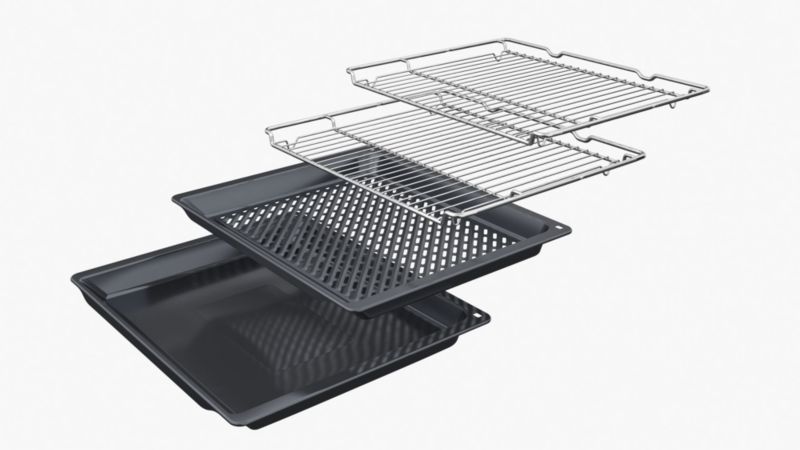 - Livré avec : Notice, Cordon d'alimentation avec prise, 1 Grille, 2 Grilles, Lechefrite, 1 x grille, 1 x lèchefrite pour pyrolyse, 1 x Plaque chauffante Air Fry