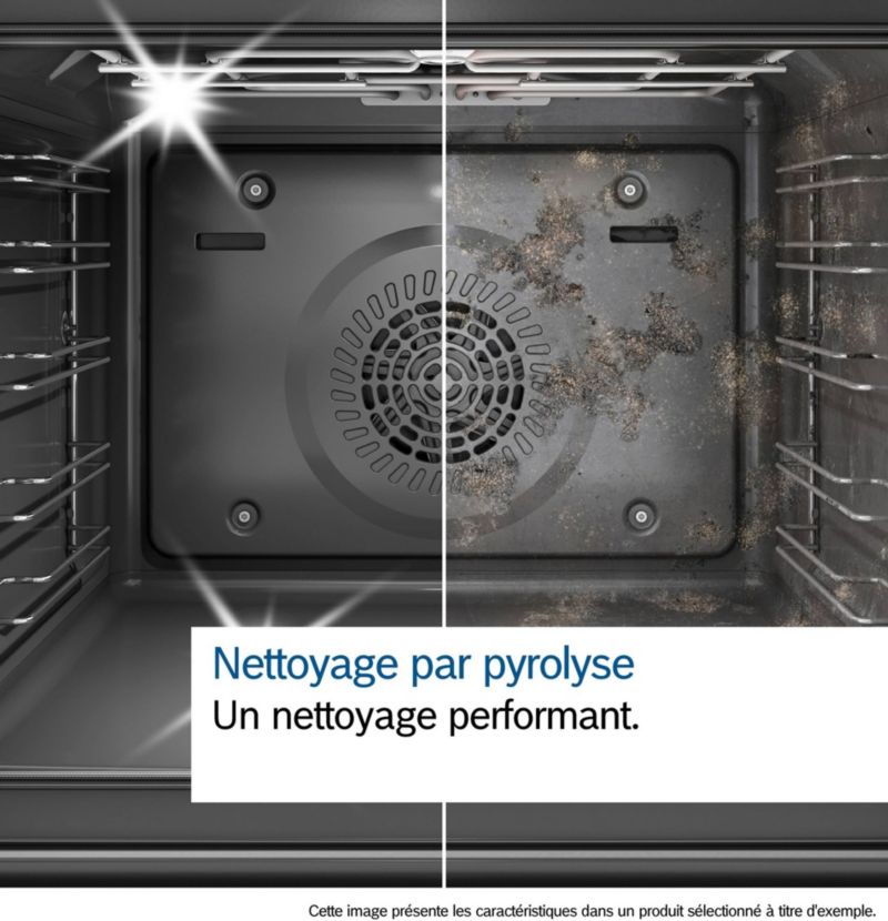 - Avantage pyrolyse : La température intérieure du four monte jusqu'à 500°C et détruit les graisses, vous n'avez plus qu'à récupérer les cendres à l'aide d'un torchon et le tour est joué !