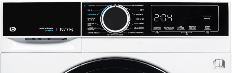 - Enchaînement automatique lavage-séchage : maximum 7 Kg