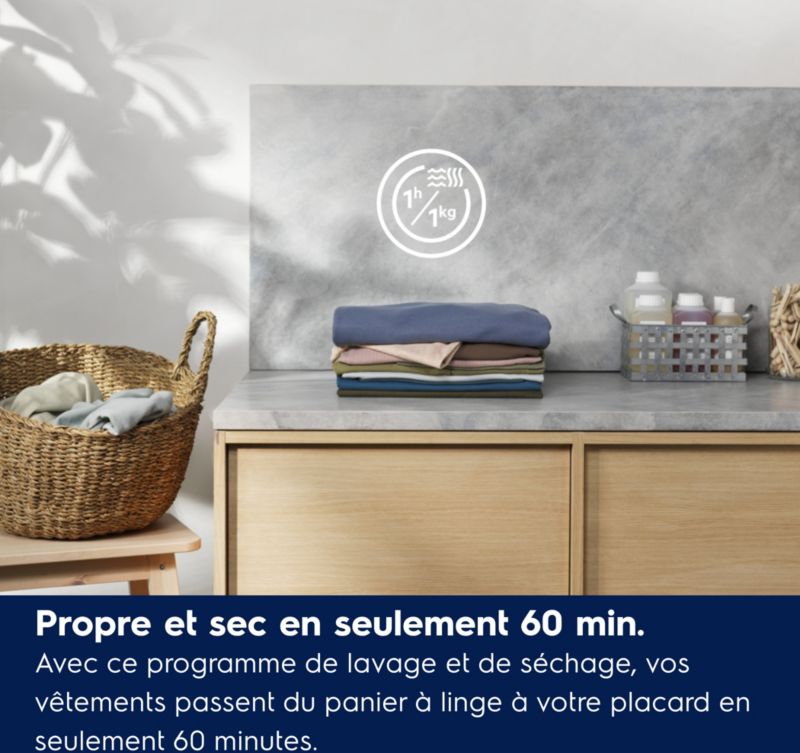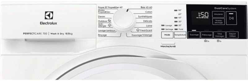 - Enchaînement automatique lavage-séchage : maximum 5 Kg