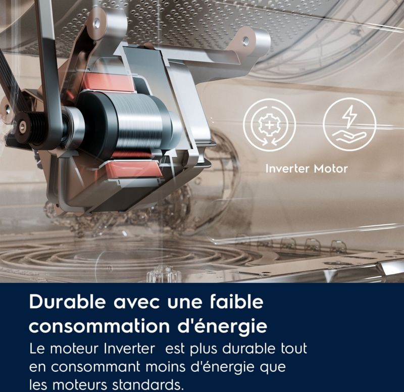- Type de moteur : induction (avec courroie) faible consommation, silencieux
