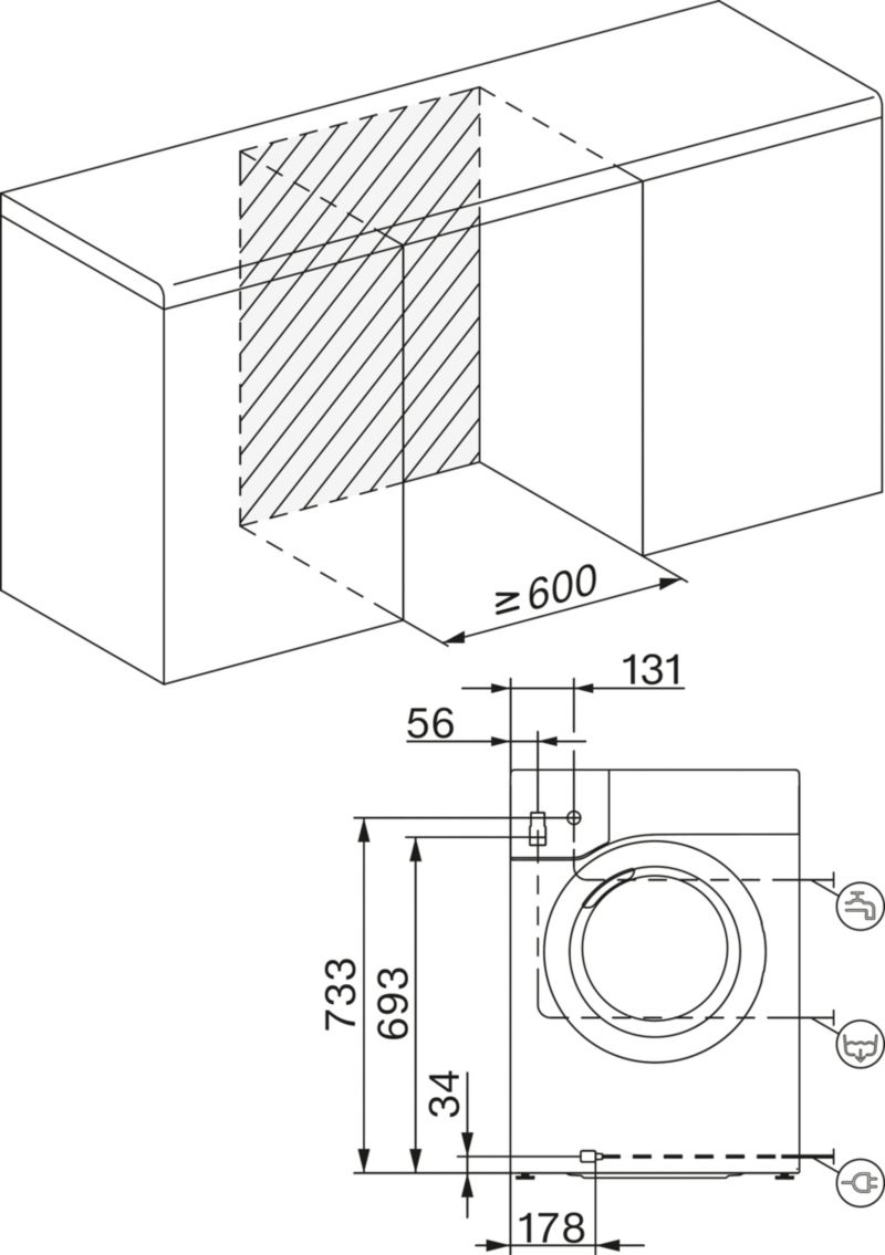 - Notre conseil : prévoir 2 à 3 centimètres supplémentaires derrière la machine pour le passage des tuyaux et câbles.