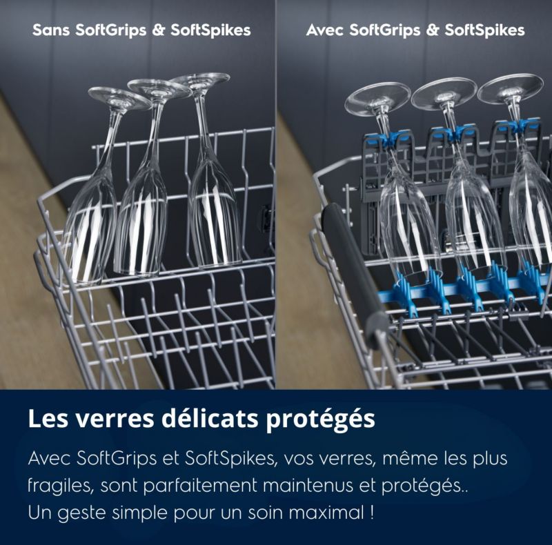 - Avantage de l'aménagament spécifique verres : Permet de protéger les verres fragiles lors d'un cycle de lavage.