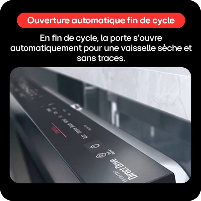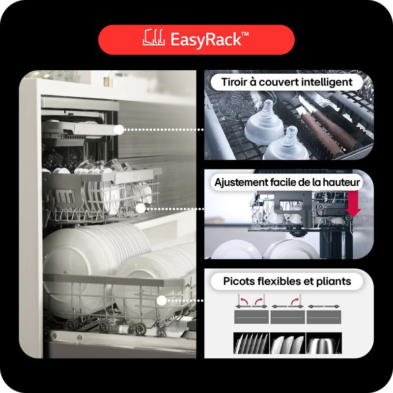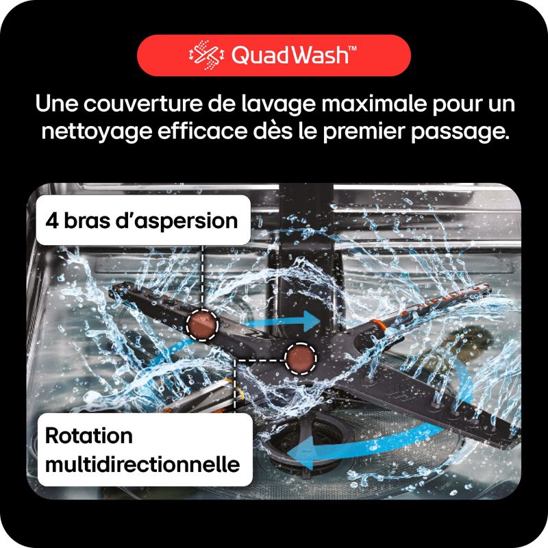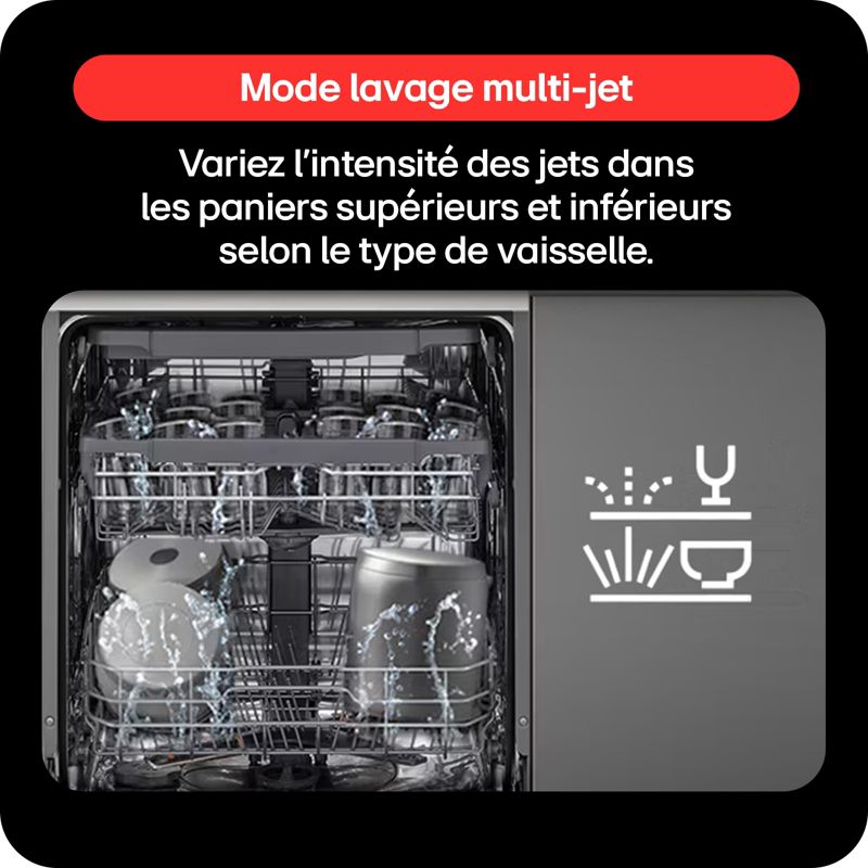 - Tiroir à couverts : Oui, il est placé dans la partie haute du lave-vaisselle et permet de bénéficier de 25% d'espace supplémentaire dans le panier inférieur