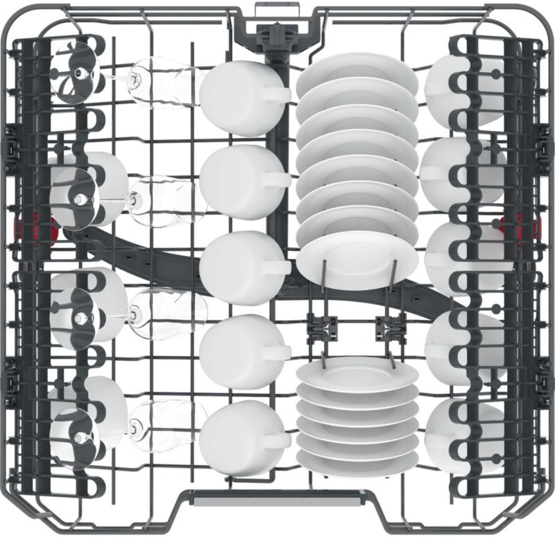 - Avantage du panier supérieur réglable en hauteur : Permet de laver des plats de grandes tailles ou de grands verres à pieds.