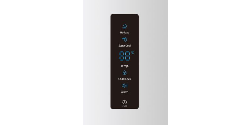 - Type de thermostat : électronique, permet un réglage précis de la température du réfrigérateur. Esthétique, intuitif et nettoyage facile