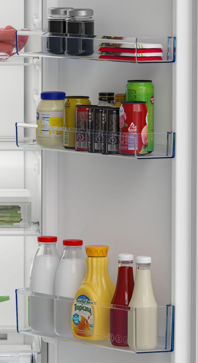 - Rangement dans la porte : modulables en hauteur pour adapter votre rangement