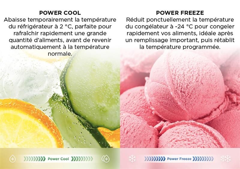 - Fonction réfrigération rapide : oui, la réfrigération rapide permet d'accélérer la baisse de la température dans votre réfrigérateur pour refroidir les aliments dans un délai très court pour conserver saveurs et nutriments