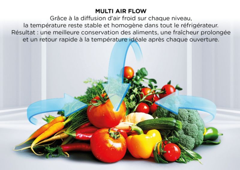 - Multi Air Flow : dispose d'aérations qui injectent de l'air frais de manière homogène dans l'appareil.