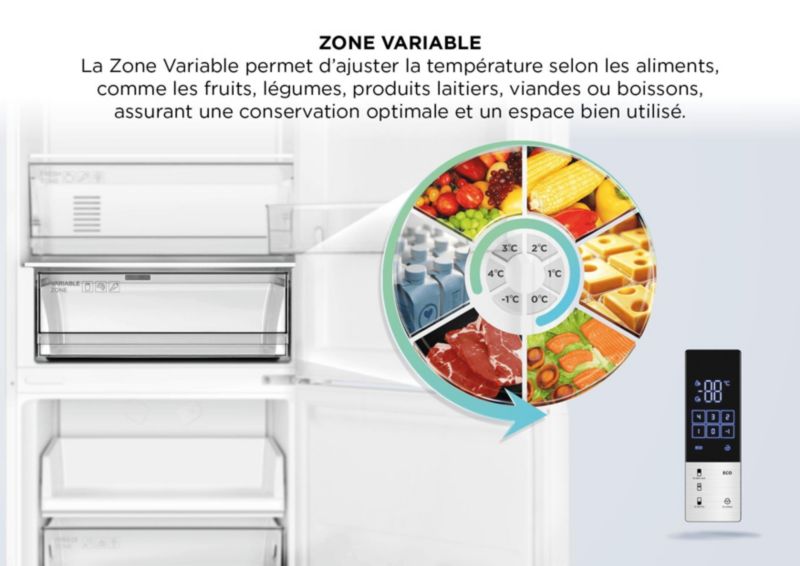 - Zone fraîcheur pour les fruits et légumes : oui, la maîtrise du taux d'humidité dans le compartiment permet une conservation parfaite des fruits et légumes