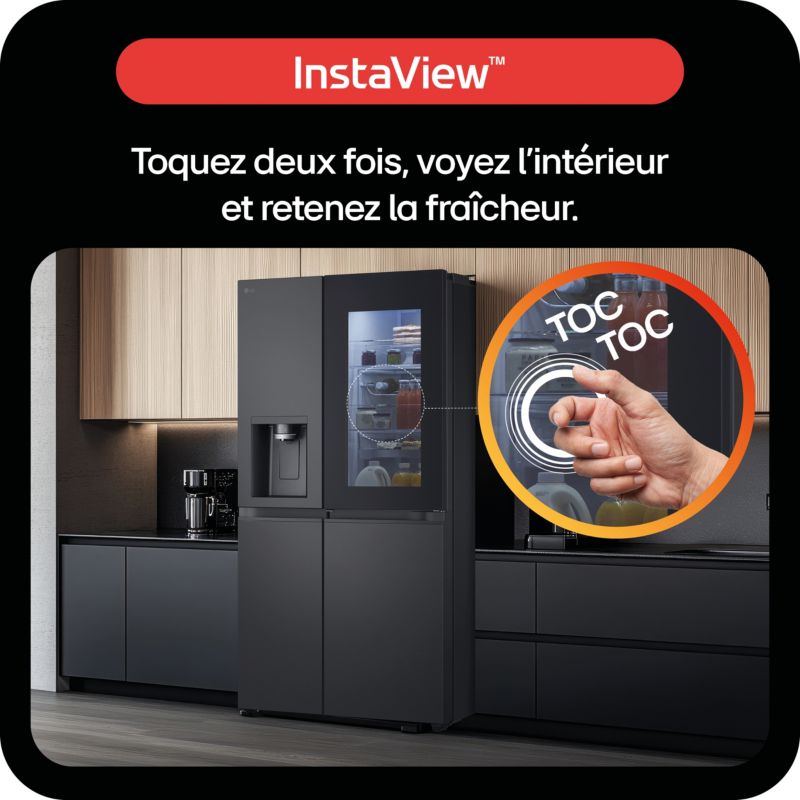- Instaview : permet de vérifier le contenu du réfrigérateur sans ouvrir la porte, cela limite la déperdition d'air froid. Frappez deux fois sur la porte et l'intérieur s'éclaire.