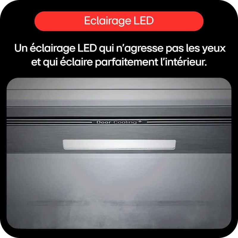 - Froid du réfrigérateur : le froid ventilé permet une répartition du froid de manière homogène et un rangement libre, sans contrainte, des aliments dans le réfrigérateur