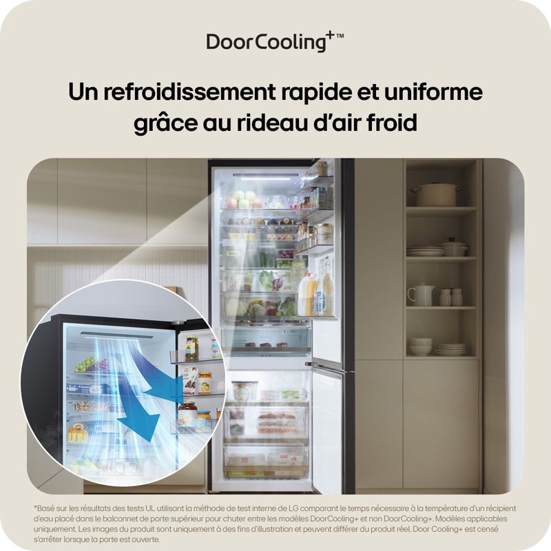 - Froid du réfrigérateur : le froid ventilé permet une répartition du froid de manière homogène et un rangement libre, sans contrainte, des aliments dans le réfrigérateur