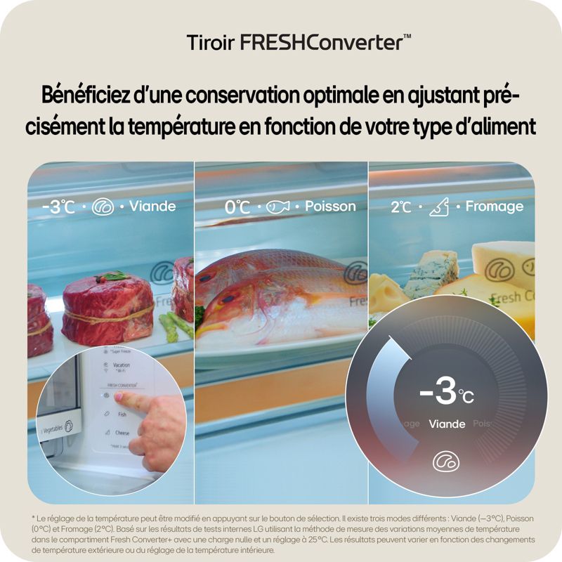 - Zone fraîcheur pour les viandes et poissons : oui, une température constante proche de 0°C et un contrôle de l'humidité permettent une conservation parfaite des viandes et poissons