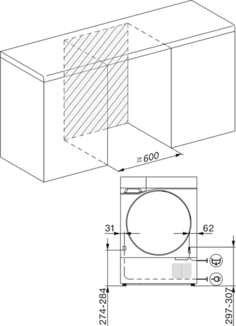 - Profondeur avec hublot fermé, débord arrière compris : 64.3