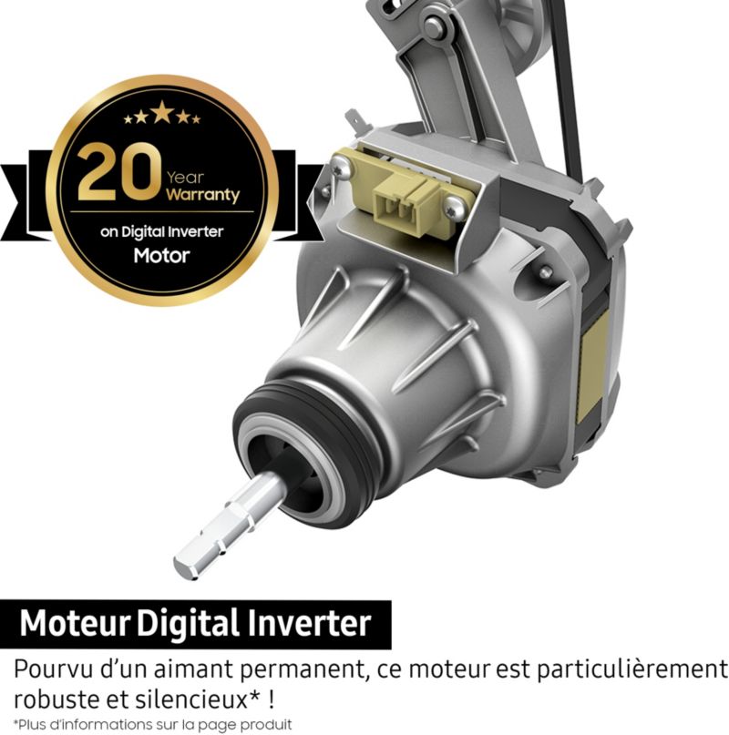 - Type de moteur : induction (avec courroie) faible consommation, silencieux