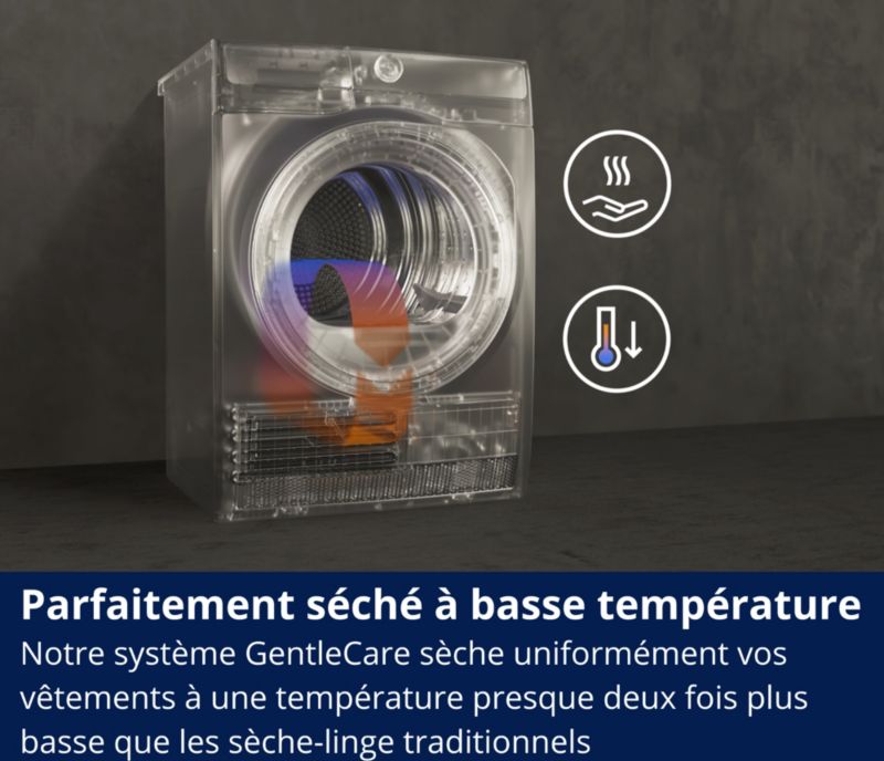 Le + : Vos vêtements restent impeccables plus longtemps grâce au séchage doux GentleCare.