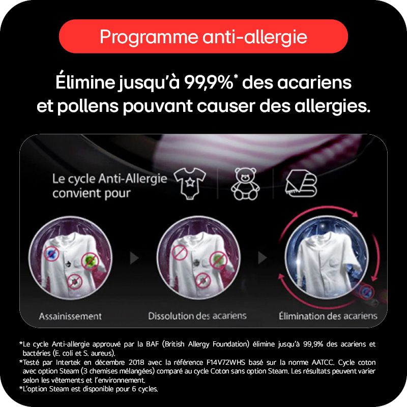 - Anti-allergie : oui, il élimine la quasi totalité des pollens, acariens et bactéries sur votre linge.