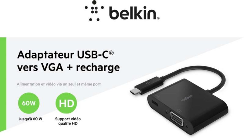 Adaptateur Belkin USB-C to VGA + Charge Adapter (réf : 1168930)