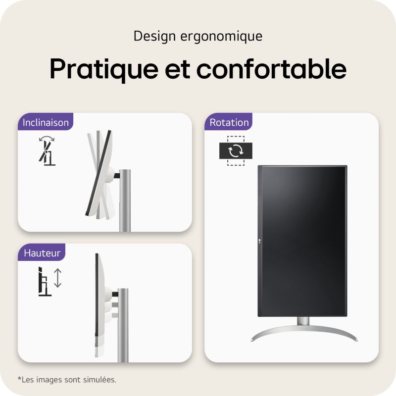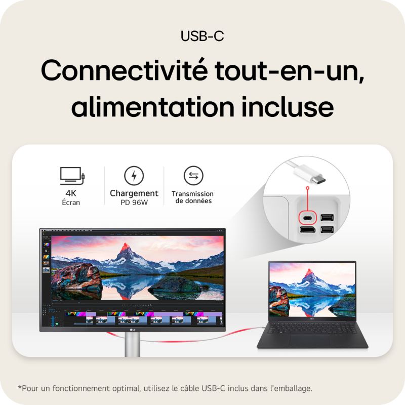 Ecran PC 4K LG 27UP850K-W UltraFine UHD 4K 27'' (réf : 1220487)