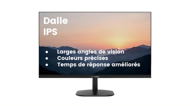 - Type de dalle : IPS : Idéal pour : Ceux pour qui la fidélité des couleurs est primordiale. Également la meilleure dalle pour ses angles de vision larges