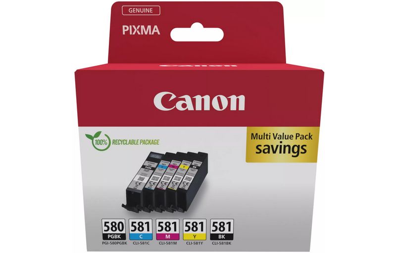 Cartouche d'encre CANON Pack Multipack 5 Originales PGI-580/CLI-581 (Noir + 4 Couleurs) - 2078C005 (réf : 1210036)