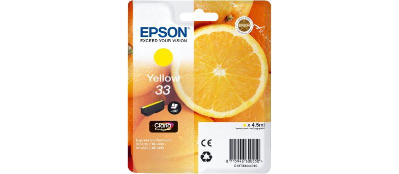 Cartouche d'encre EPSON Originale T3344 Jaune (Yellow) Série Orange - C13T33444010 (réf : 1059008)