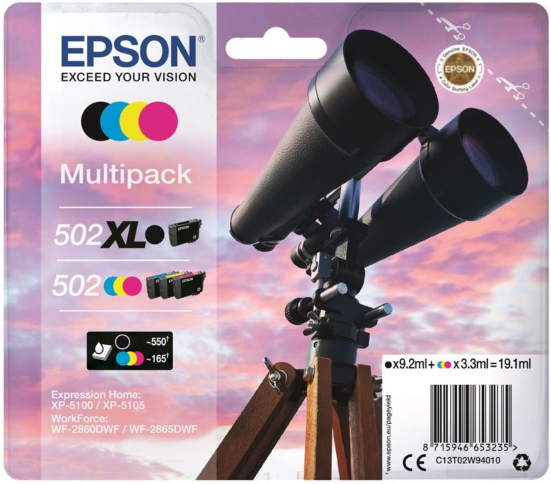 Cartouche d'encre EPSON Pack Multipack 4 Originales 502 (Noir XL + 3 Couleurs Standard) Série Étoile de Mer - C13T02W94010 (réf : 1105539)
