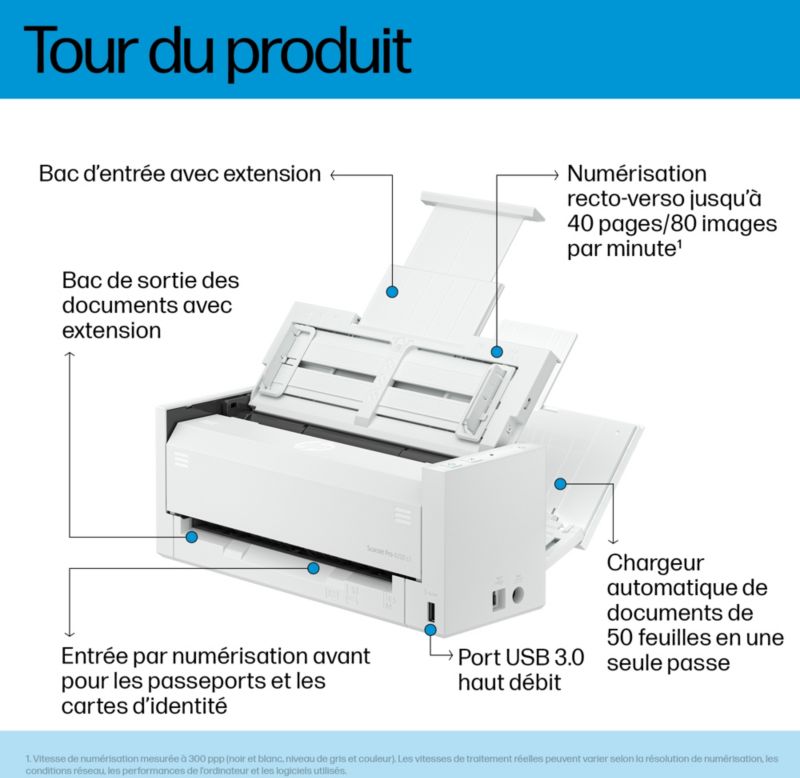 - Vitesse en ppm : Numérisation rapide (40ppm)