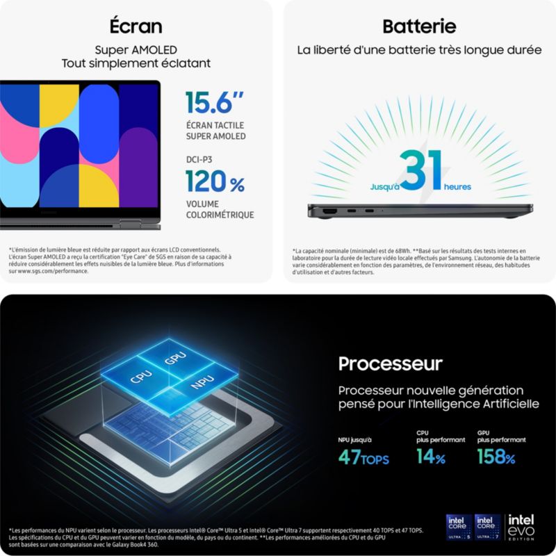 - Eligible à Intel Evo Platform : Intel Core Ultra