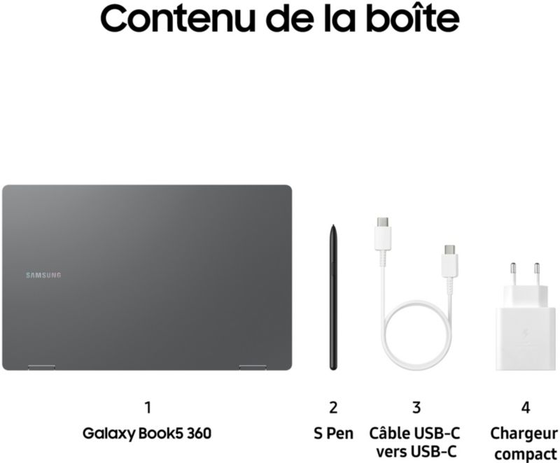 Ordinateur portable SAMSUNG Galaxy Book5 360 15,6 U5 16Go 512Go AI (réf : 1234857)