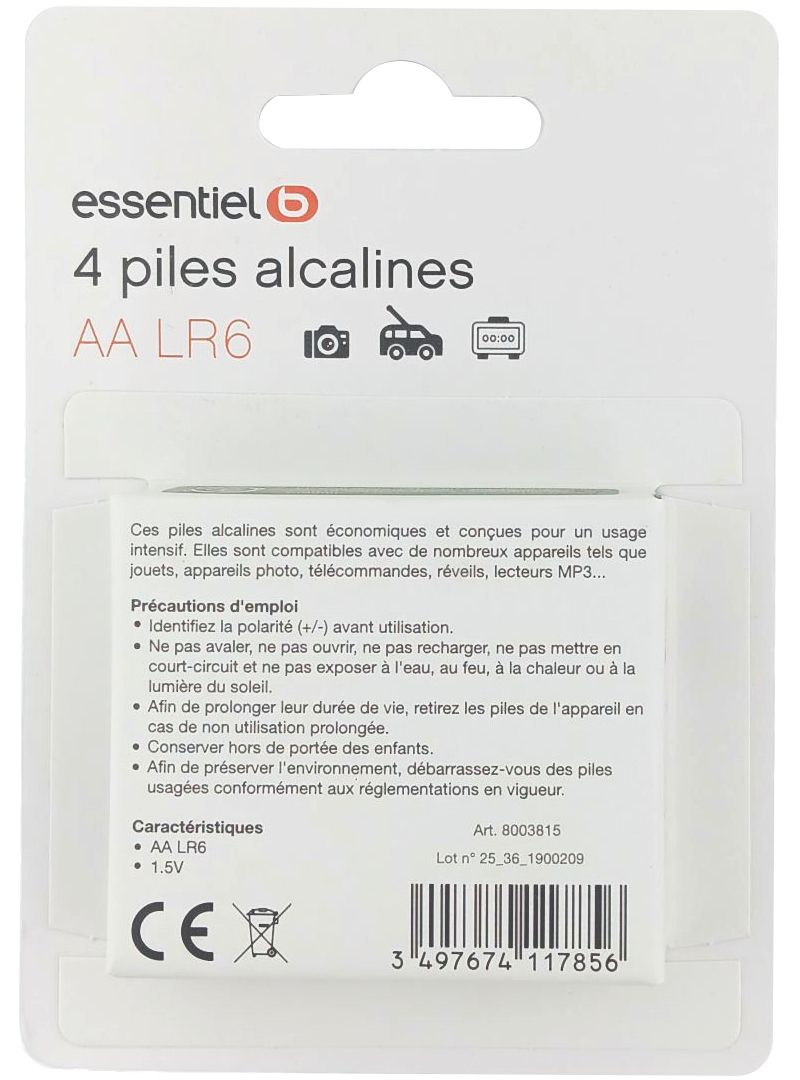 Pile ESSENTIELB POWERPLUS LR06 AA Lot de 4 (réf : 8003815)