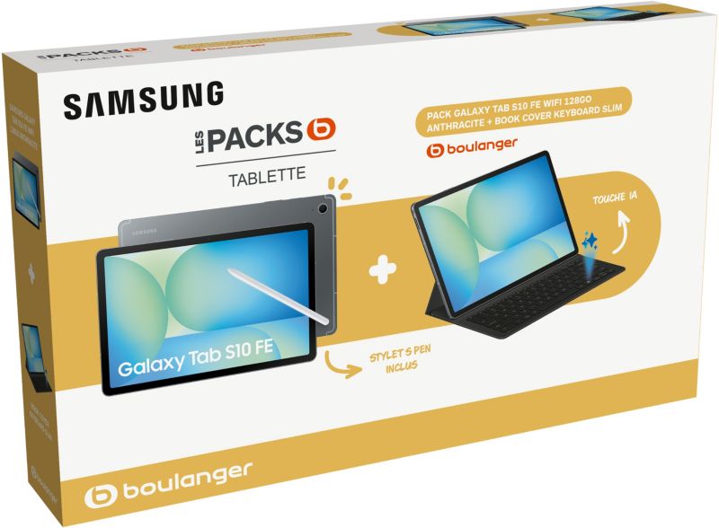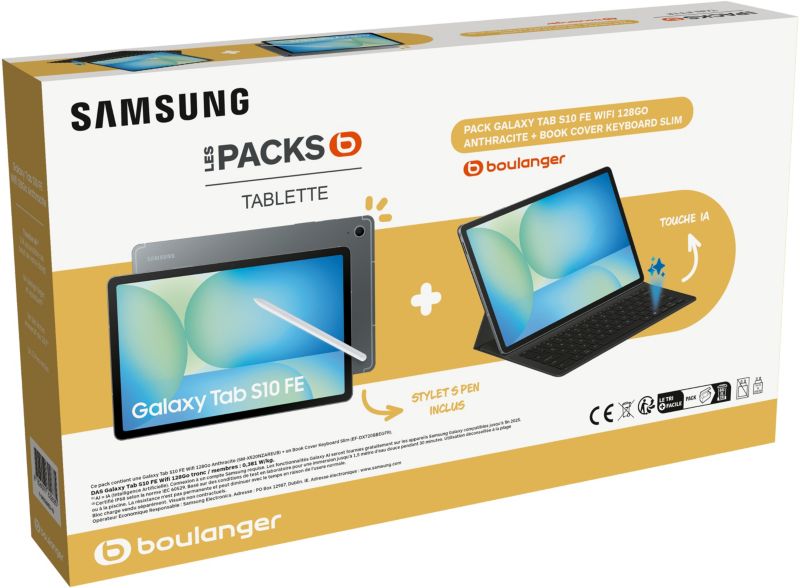 Tablette Android SAMSUNG Pack Galaxy Tab S10 FE 128Go + BookCover Keyboard Slim + S Pen inclus (réf : 1221478)