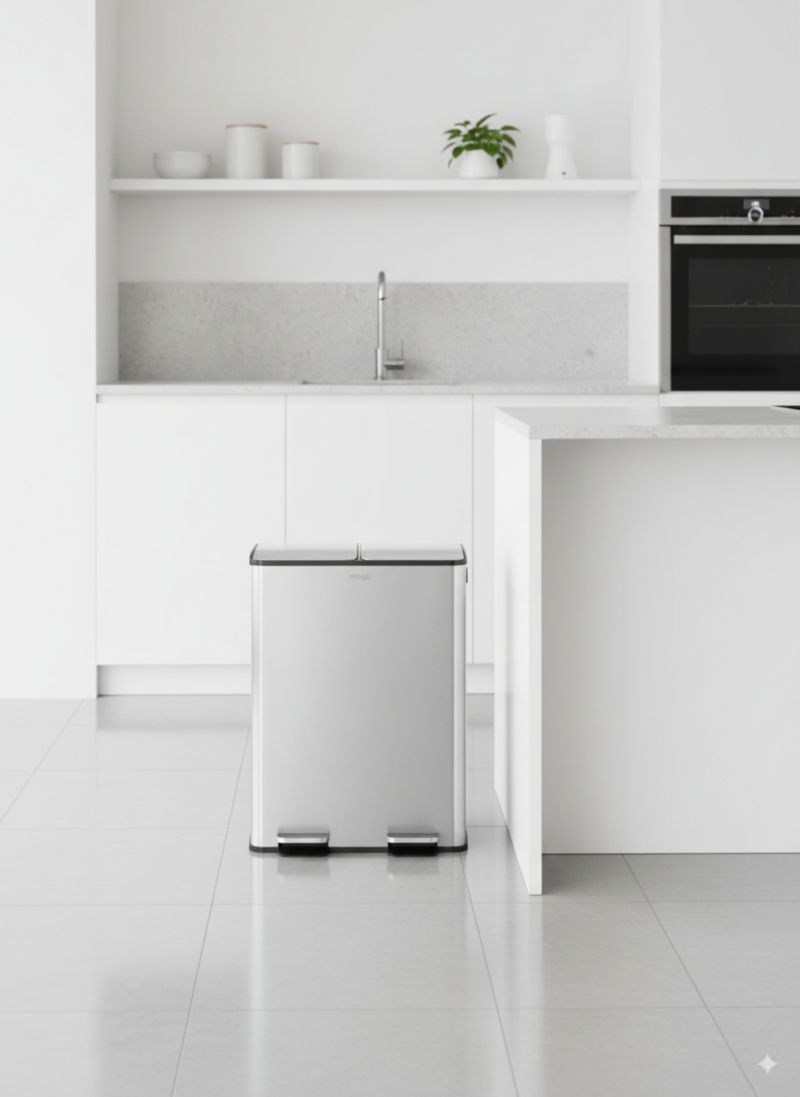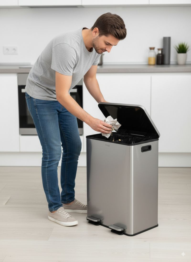 - Particularité : Bacs internes et fond de la poubelle en plastique recyclé