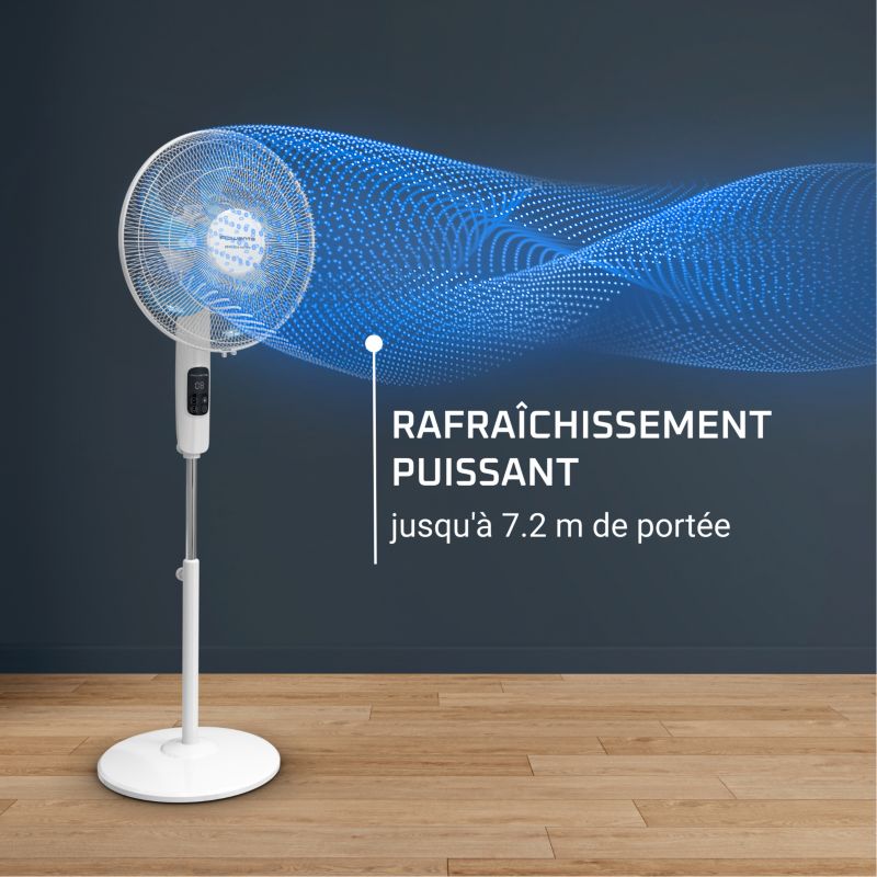 - Format du ventilateur : sur pied, léger et mobile, se pose sur le sol et se régle en hauteur
