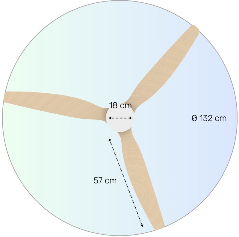 - Format du ventilateur : plafonnier, s'installe au plafond de votre pièce