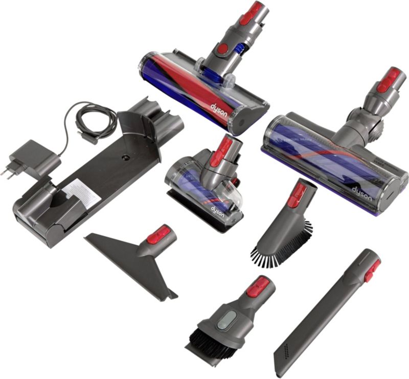 - Livré avec : Brosse matelas, Mini brosse douce, Suceur long, Brosse Motorbar, Brosse rouleau doux, Accessoire combiné, Mini brosse motorisée, Station murale de charge et de rangement, Chargeur