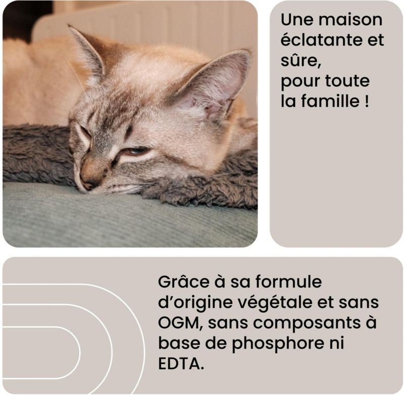 - Plus produit : Formule végétale non moussante pour un nettoyage sans trace de tous vos sols durs.