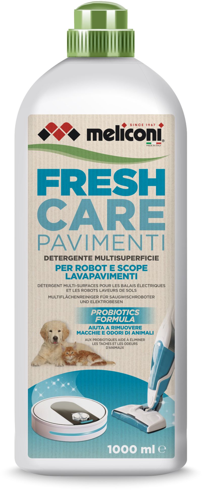 Détergent MELICONI pour aspirateur robot et balai laveur - spécial animaux 1 litre universel (réf : 1229029)