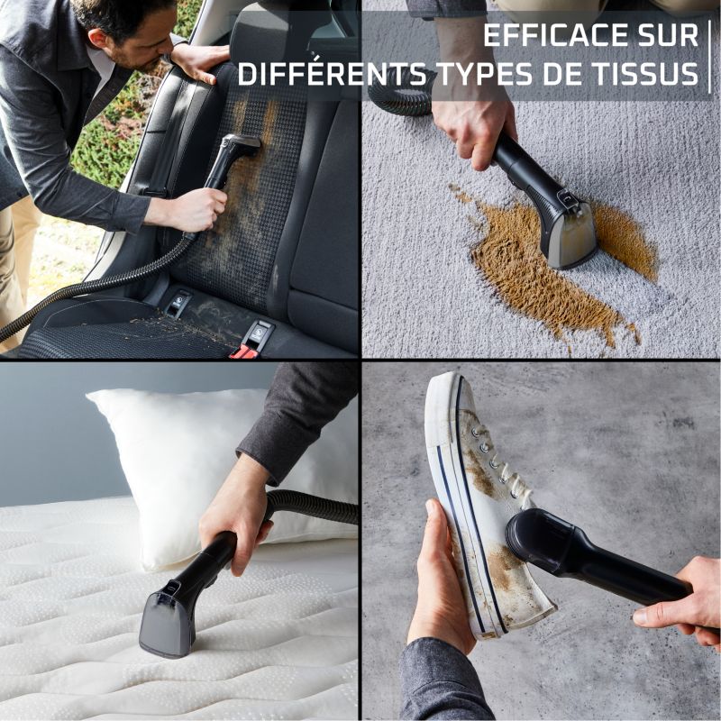 Le + : Ses nombreux accessoires adaptés à chaque besoin (ex: tapis, moquettes, canapé, chaussures, voiture)